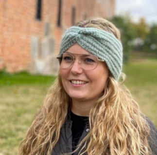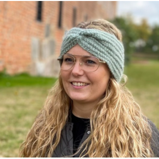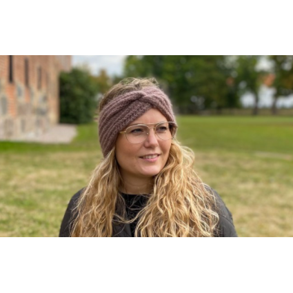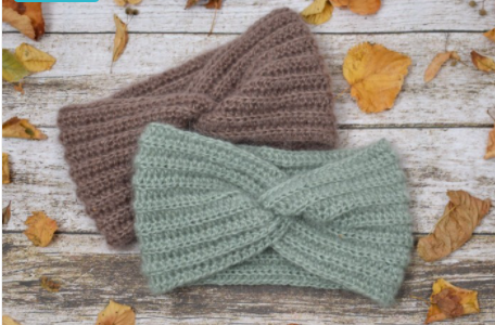 Bandeau crocheté main coloris au choix, nougat ou vert amande, en fil mohair (50%) et acrylique (50%) de qualité.
