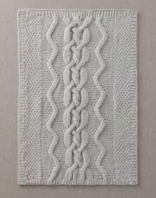 D'inspiration tricot irlandais et jeu de torsades ce modèle de couverture est toute douce, chaude et douillette. Idéal pour l'arrivée de bébé.