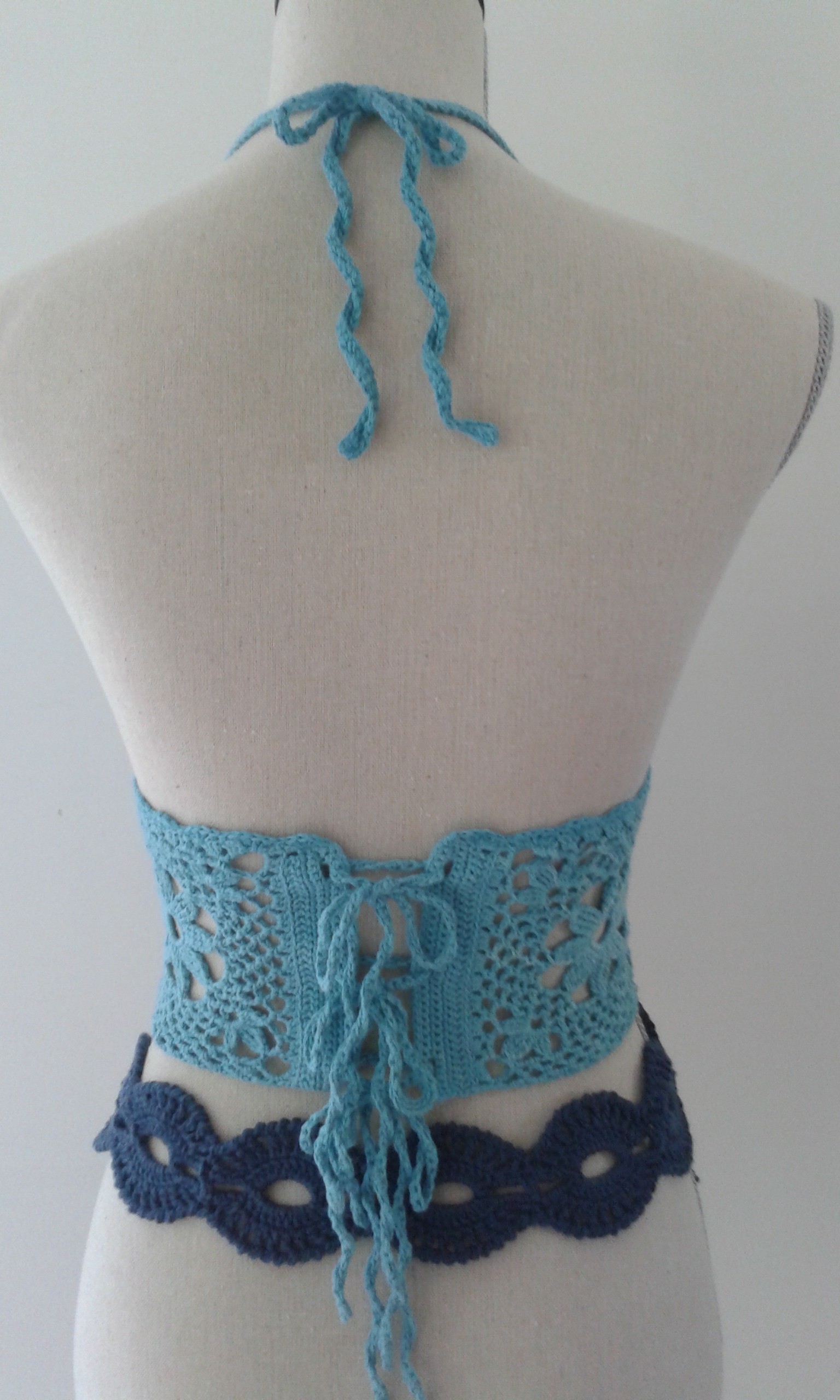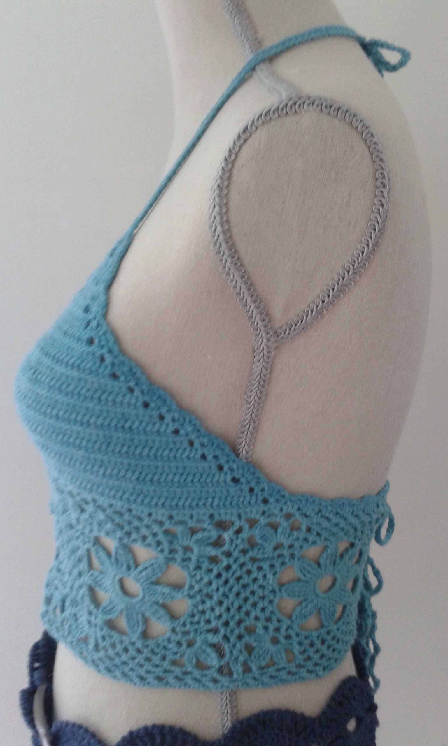 Le bas de ce bustier est joliment travaillée avec une rangée de motif granny très tendance lui apportant beaucoup de charme.