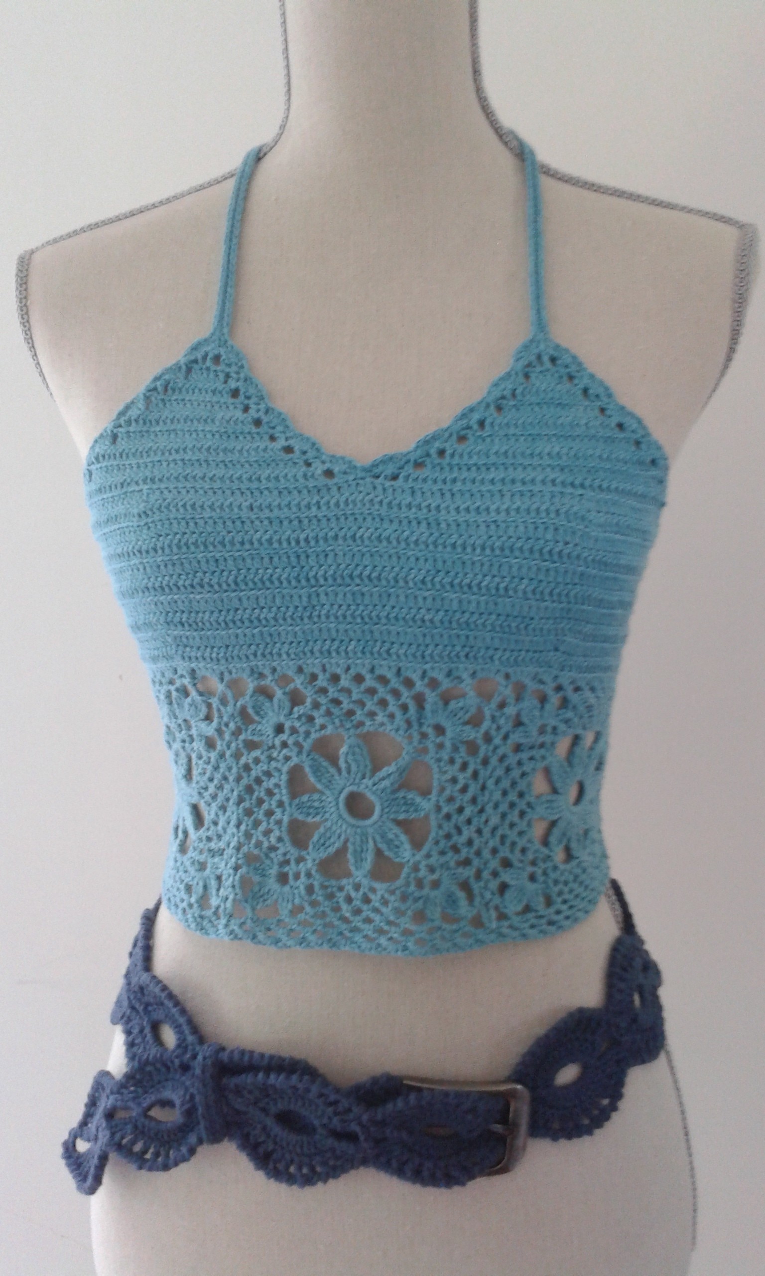 Je vous présente ce joli top, idéal pour une garde-robe estivale ! Il est réalisé entièrement à la main.