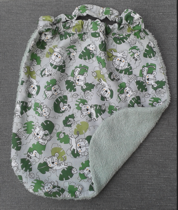 Une face en coton tissu  motif et l'autre en éponge